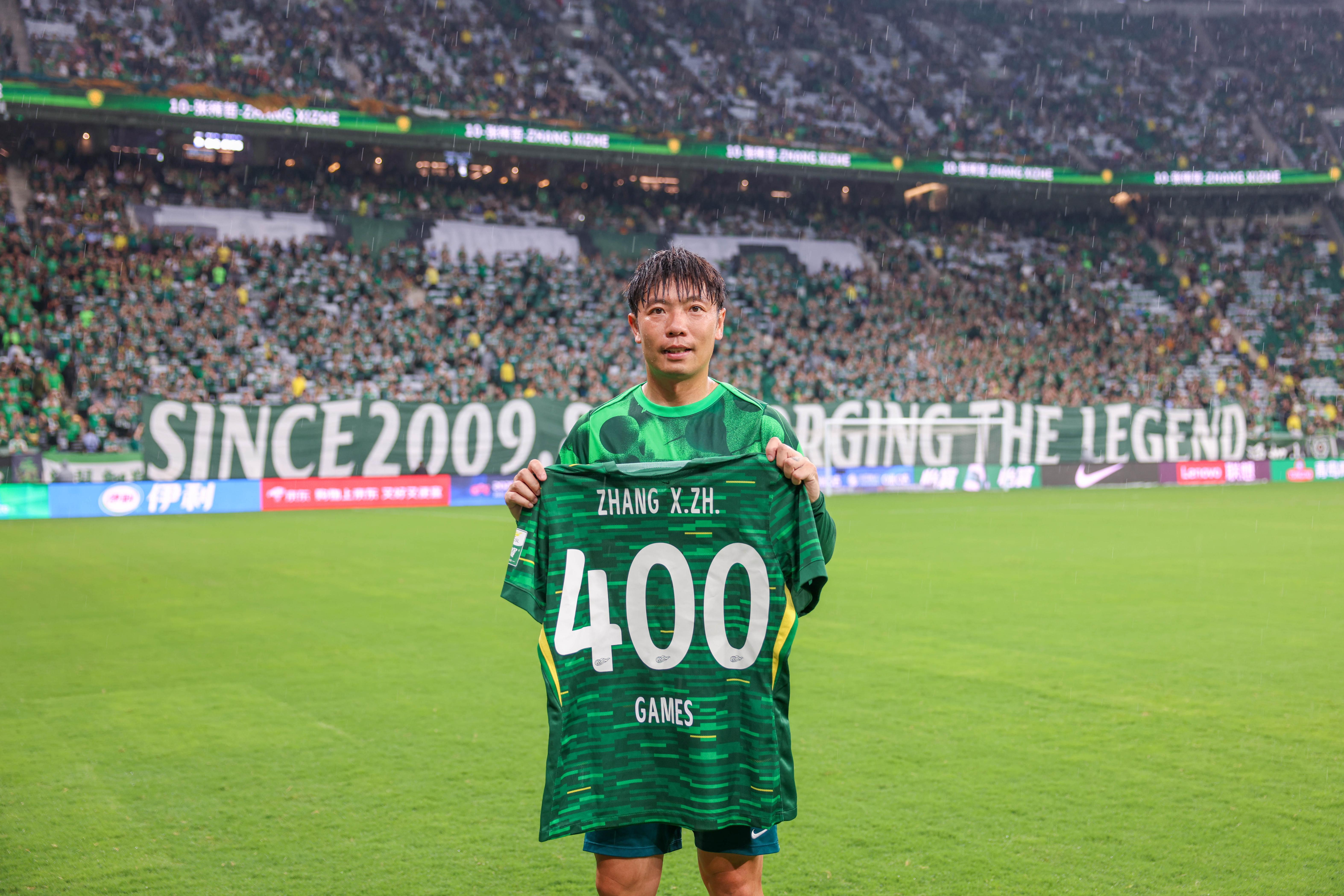 比赛开始前,张稀哲从俱乐部总经理李明的手中接过了400场纪念球衣。今晚,张稀哲也将作为国安队的队长,赛季首次首发出场。